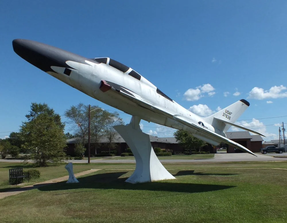 Developed in the mid-1980s. the George R. Hall Air Park displays three plinth-mounted jets (seen below) that would have been appropriate for Colonel Hall’s days in the Air Force, including an McDonnell RF-101C Voodoo - Serial Number (S/N) 56-217, a Lockheed T-33A Shooting Star (or T-Bird) S/N 52-9590, and a Republic RF-84F Thunderflash - S/N53-7636. All of the aircraft a very well cared for, and presented in fine condition.